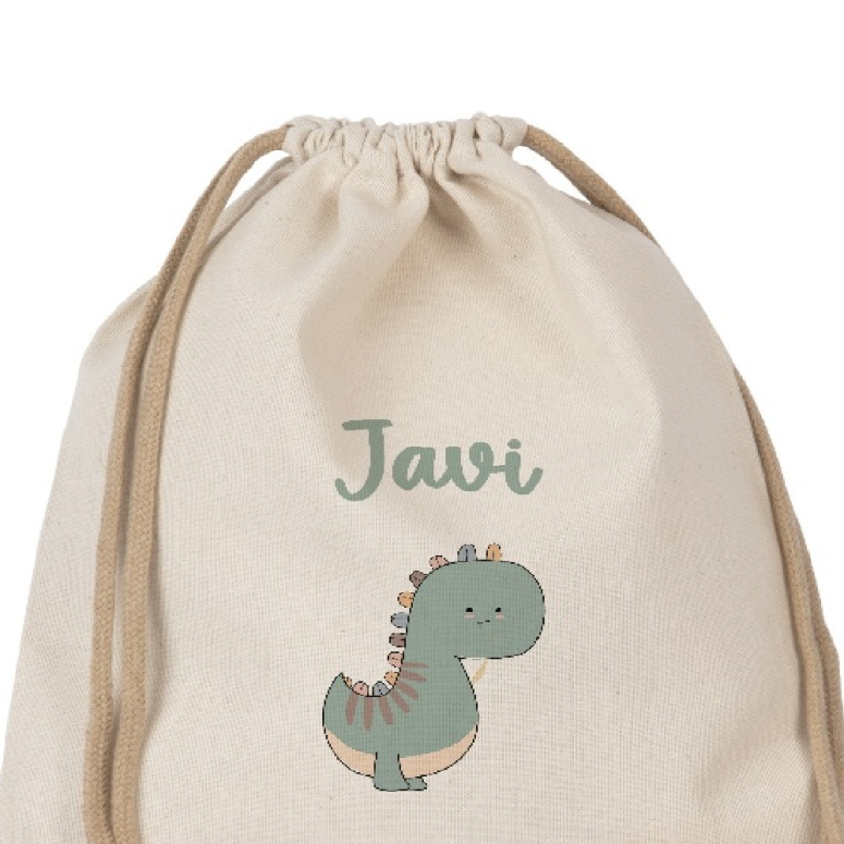 Mochila tipo saco "Aventuras Dulces" con diseño Nube personalizada con su Nombre. Tela reciclada resistente, cierre de cordón, ligera y cómoda. Ideal para colegio, excursiones o actividades al aire libre.