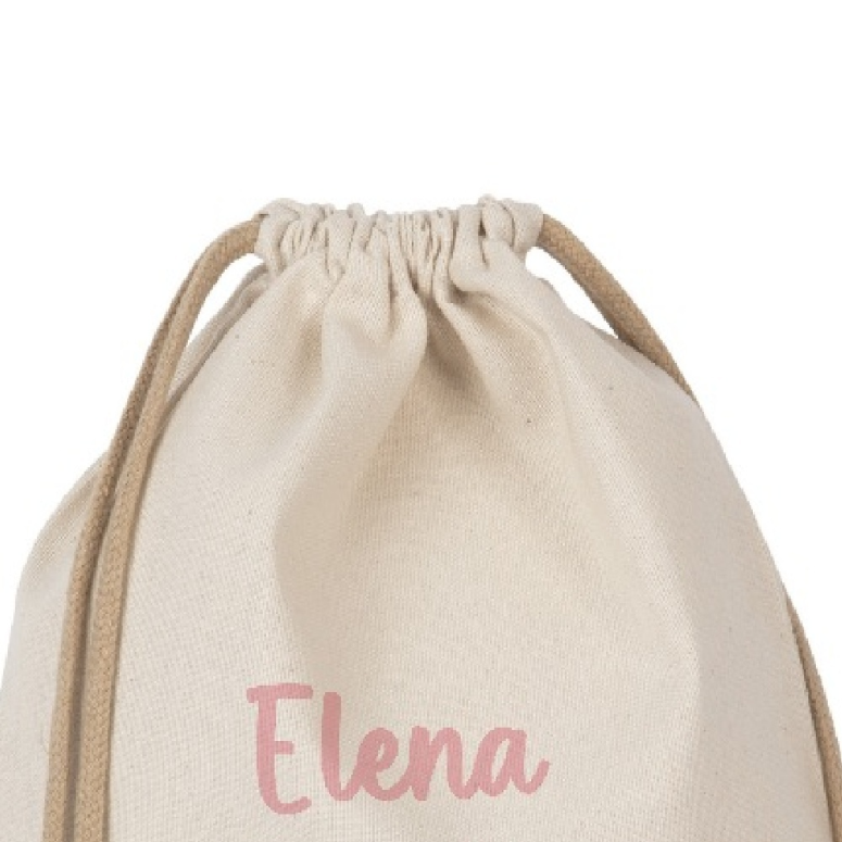 Imagina a tu peque llevando el diseño Elefante junto a su Nombre, hecha con tela reciclada resistente y sostenible, ligera y con cierre de cordones fácil de usar, perfecta para fomentar la independencia de los más pequeños.