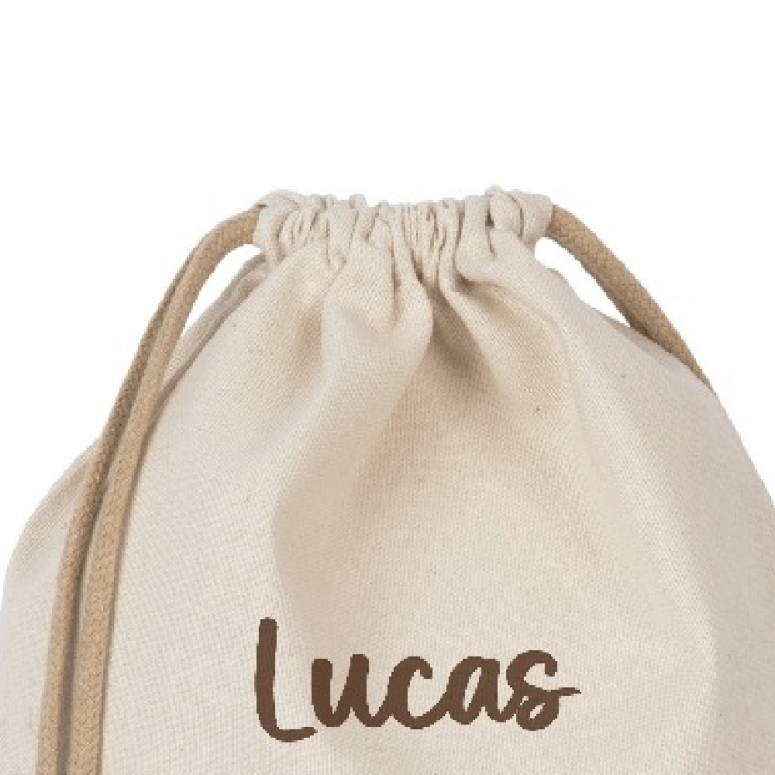 Mochila tipo saco "Aventuras Altas" con diseño Jirafa personalizada con su Nombre. Tela reciclada resistente, cierre de cordón, ligera y cómoda. Ideal para colegio, excursiones o actividades al aire libre.