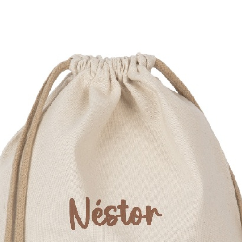 Mochila tipo saco "Aventuras Altas" con diseño Jirafa personalizada con su Nombre. Tela reciclada resistente, cierre de cordón, ligera y cómoda. Ideal para colegio, excursiones o actividades al aire libre.