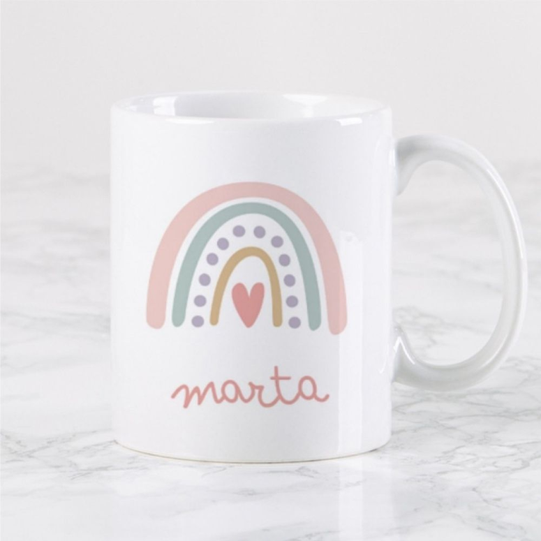 Personalízala con su Nombre sobre el diseño Arco Iris y convierte cada desayuno o merienda en recuerdos únicos, llenos de magia y fantasía con nuestra taza blanca Arco Iris.