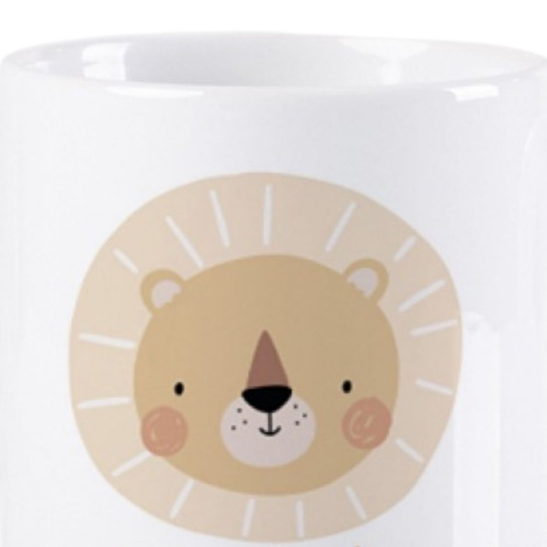 La taza de plástico diseño León Asia está certificada para uso alimenticio seguro y es perfecta para despertar sonrisas y crear momentos únicos en el día a día de tus peques.